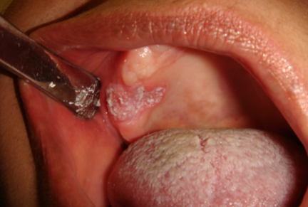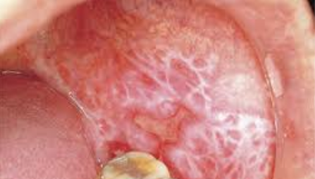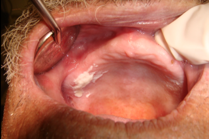 - Red patches (erythroplakia) or white patches (leukoplakia) in the mouth.